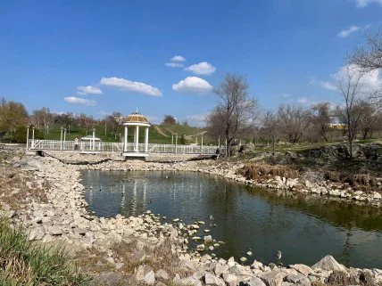 Вознесенівський парк в Запоріжжі потроху відновлюється — після запуску фонтану обмілі ставки знову наповнюються водою. Повертається вода, а разом із нею — життя. На радощах риба, що там залишилась, пішла на нерест.