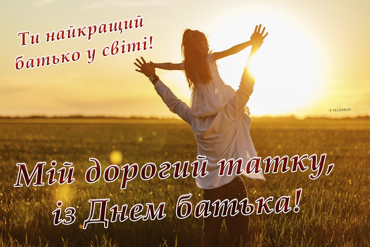 Дорогий татусю! Вітаю тебе з Днем батька! Ти завжди був і залишаєшся для мене справжнім героєм, прикладом мужності та сили. Бажаю тобі міцного здоров'я, довгих років життя, багато радісних моментів і здійснення всіх мрій. Ти для мене найкращий, і я дуже тебе люблю!