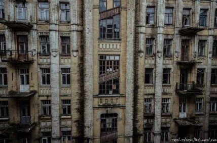 Дослідник Києва Кирило Степанець на своїй сторінці у Facebook опублікував фотографії загадкового будинку, зазначивши, що "мовчазний гігант виглядає десятками порожніх вікон-очей, і створює невимовну атмосферу".