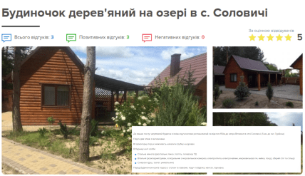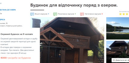 Дерев'яні будиночки біля озера здають подобово. Наприклад, двоповерховий будиночок на 9 осіб пропонують за 4000 грн за добу. Згідно з оголошенням, він розташований за 100 м від озера, поруч є стоянка і можна з тваринами.