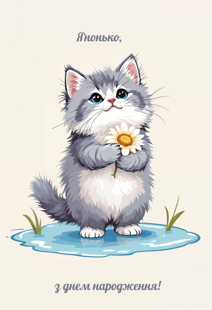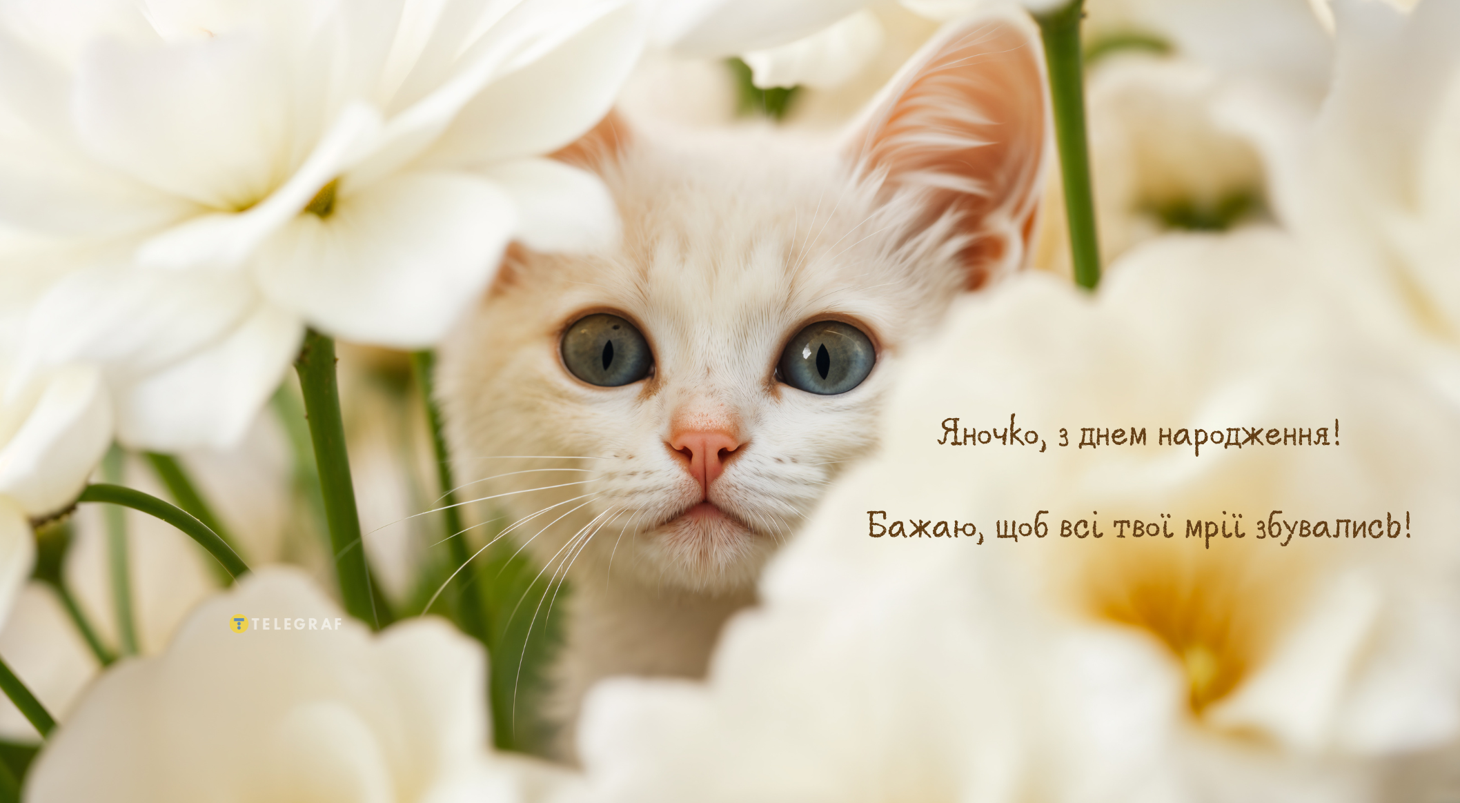 З днем народження, Яночко! Бажаю, щоб тебе любили всі: котики — за тепло, друзі — за душу, всесвіт — за посмішку 😻 Нехай щастя прилипає до тебе, як блискітки на вечірці!