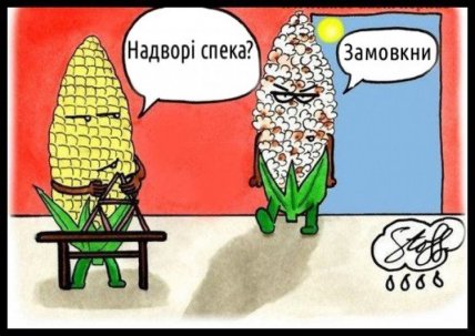 Користувачі порівнюють себе з кукурудзою, яка під дією сонця перетворюється на попкорн. Один із найпопулярніших мемів зображує жовту кукурудзину, яка запитує: "Надворі спека?", а у відповідь — роздратоване "Замовкни" від вже "розпухлого" попкорну з обличчям, відвернутим від палючого сонця.