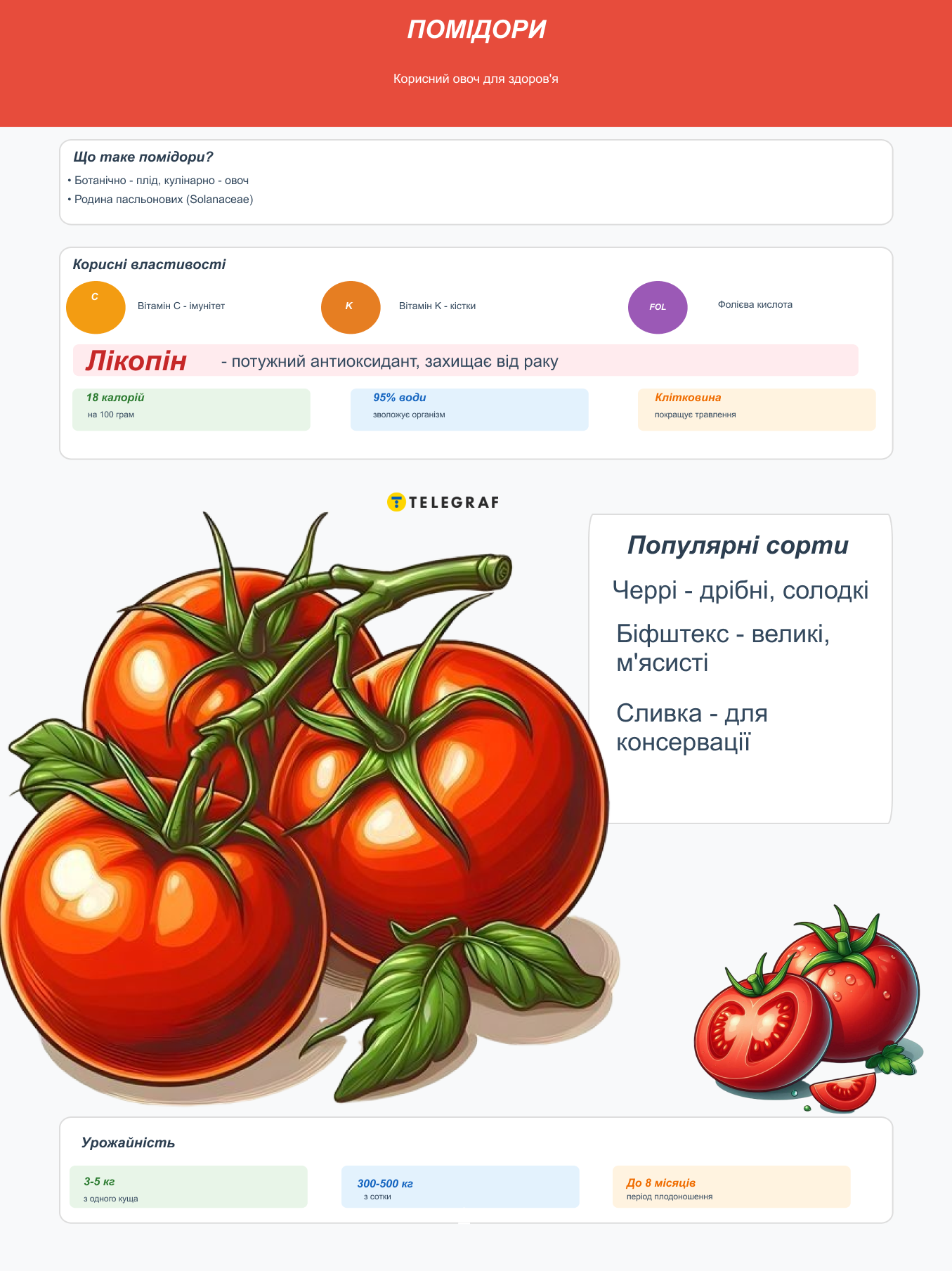 Це означає, що за 100 кг помідорів можна отримати від 3 500 до 8 000 гривень залежно від сорту та каналу збуту.