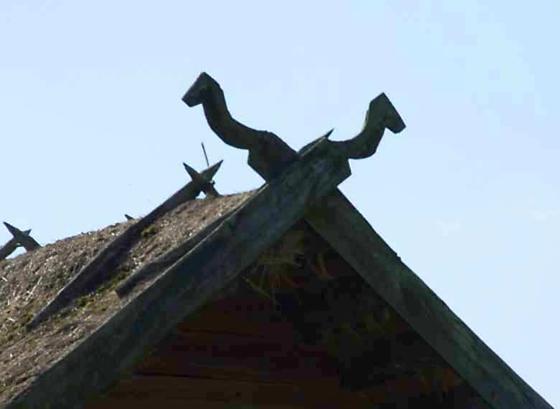 Будинок збудували з соснових плах, у ньому три вікна з дерев’яними засувками. Дах у споруді двосхилий, на кроквах покритий соломою. Вітрові дошки на фронтонах закінчуються різьбленими фігурами коней.