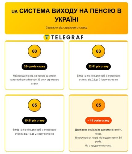 Наразі в Україні діє система виходу на пенсію залежно від страхового стажу: