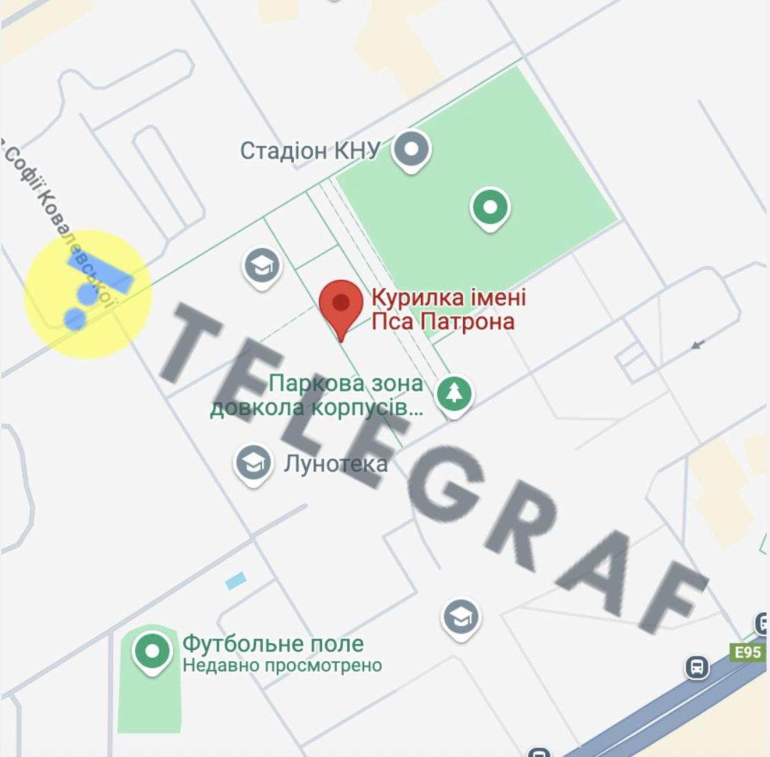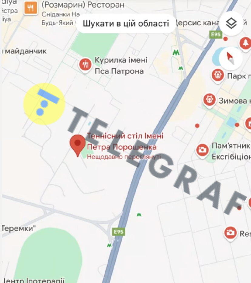 Зауважимо, що локація знаходиться біля станції метро Виставковий центр. Однак на відео також потрапив ще один курйоз — курилка імені Пса Патрона. До слова, "Телеграф" перевірив на карті наявність цих об'єктів. Тенісний стіл Google чомусь не показав, а от курилка імені Пса Патрона дійсно існує.