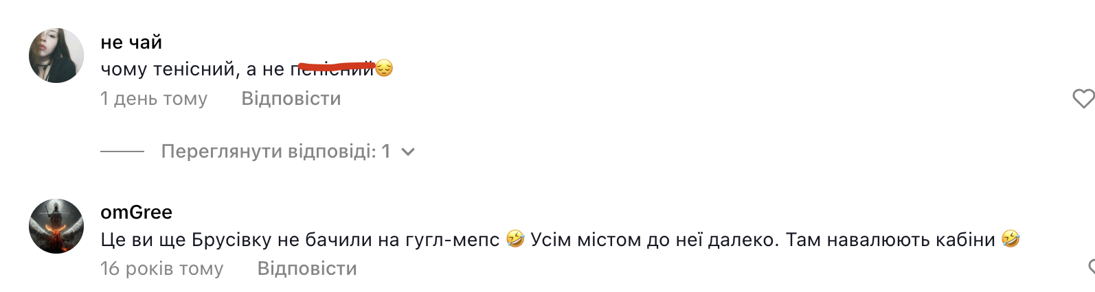 У коментарях користувачі зазначили, що не знають на чому авторка акцентувала на тенісному столі чи курилці. Були і ті, хто жартували про Порошенка і маленький теніс. Деякі люди ділились дивними назвами зі своїх міст. До прикладу, у Білий церкві є Білоцерківське море з піснями на дні.