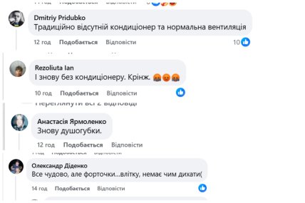 "Традиційно відсутній кондиціонер та нормальна вентиляція", "І знову без кондиціонеру. Крінж", "Знову душогубки", "Все чудово, але форточки … влітку, немає чим дихати", "Там дуже важко їхати влітку", — пишуть в мережі.