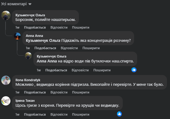 У мережі назвали можливі причини всихання малини. Так, на думку користувачів, руйнувати рослину може борозняк — личинка травневого жука (хруща), яка шкодить малині, пошкоджуючи її коріння. Позбутися проблеми можна поливом нашатирю: пів пляшки нашатирного спирту на відро води.