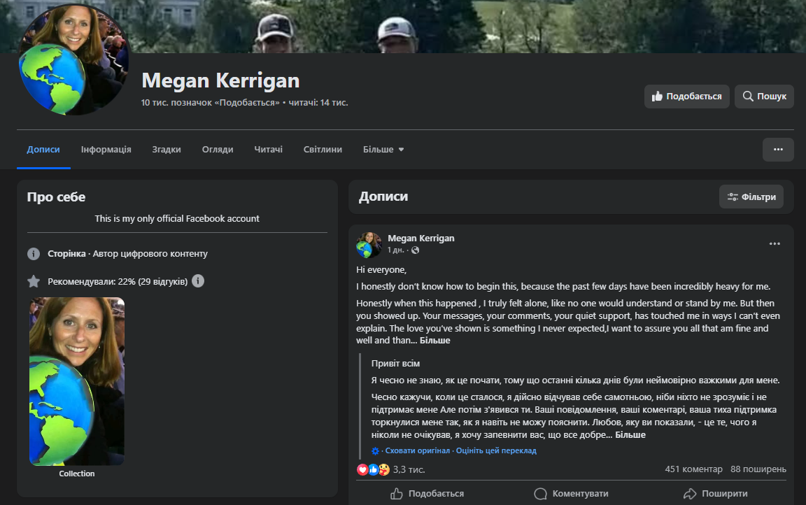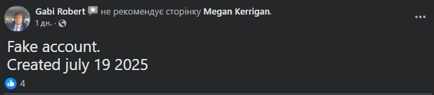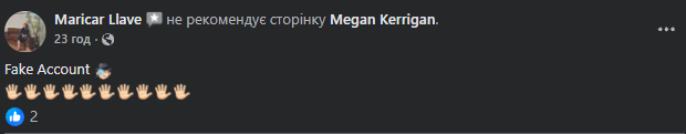 Новий аккаунт у соцмережі під ім’ям Megan Kerrigan з’явився 19 липня і швидко набрав понад 14 000 підписників. Перший пост безпосередньо відсилає до скандалу і закінчується фразою: "Я заберу своїх дітей і залишу цю огидну людину позаду".