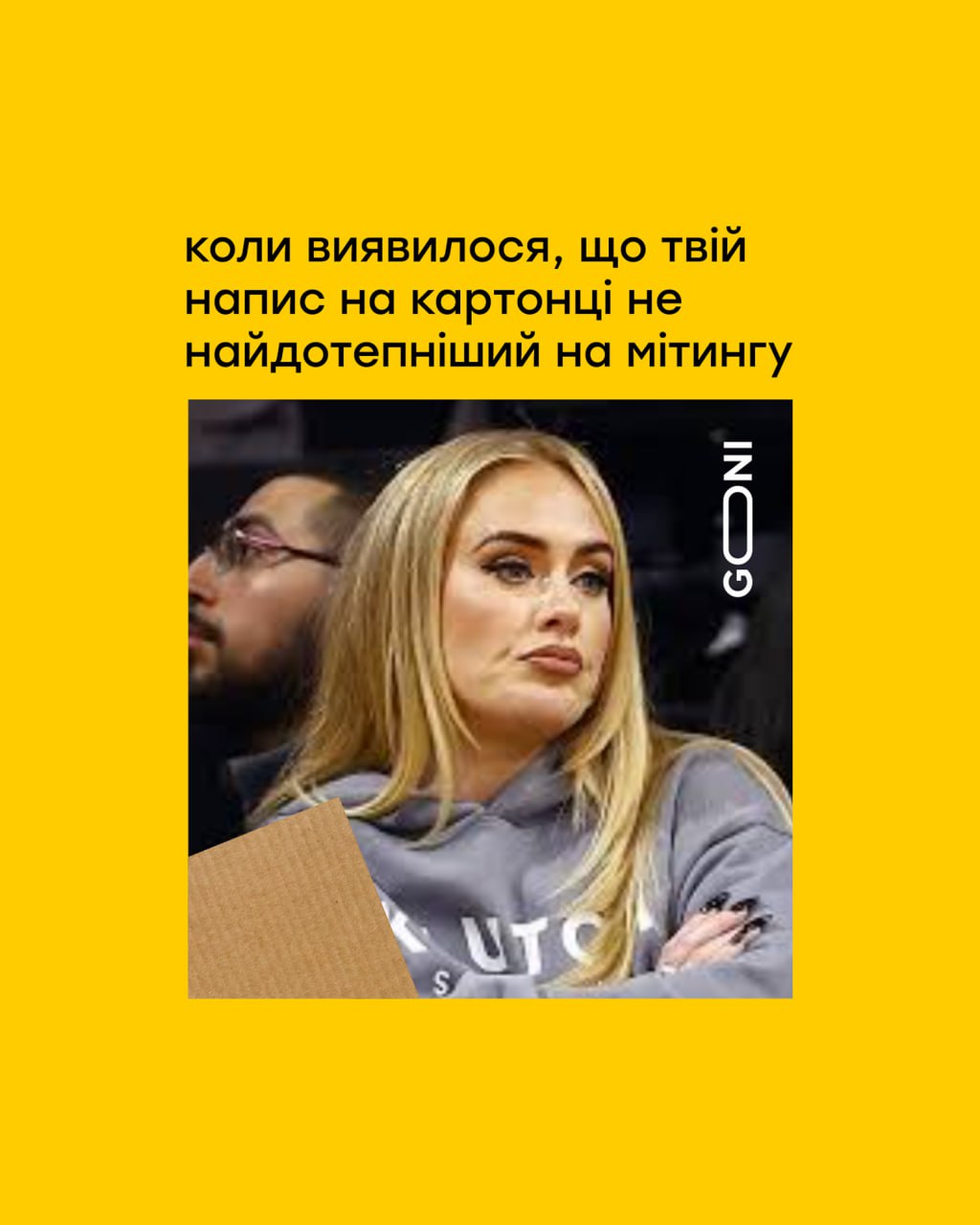 Але не варто думати, що на картонках писали самі гасла. Деякі з них були витворами плакатного мистецтва і згадували відомі меми.