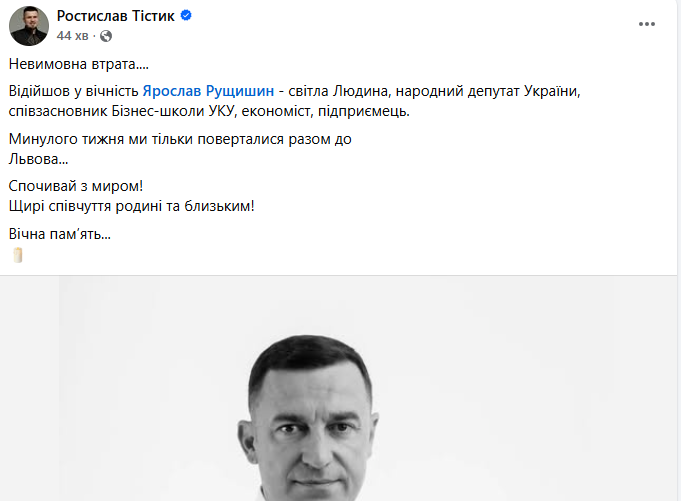 Втрата для Львова, УКУ й України: як згадують загиблого нардепа Ярослава Рущишина