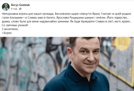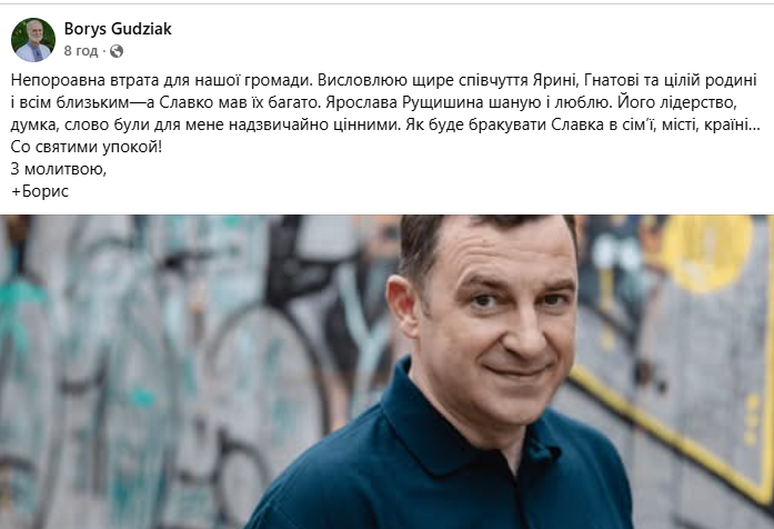 Президент УКУ митрополит Борис Ґудзяк пише: "Його лідерство, думка, слово були для мене надзвичайно цінними. Як буде бракувати Славка в сімʼї, місті, країні".