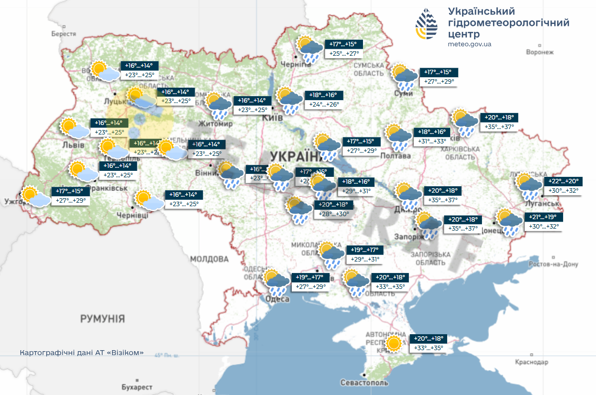 Проте в західних областях буде не так спекотно. Атмосферу освіжатимуть тривалі дощі та грози.