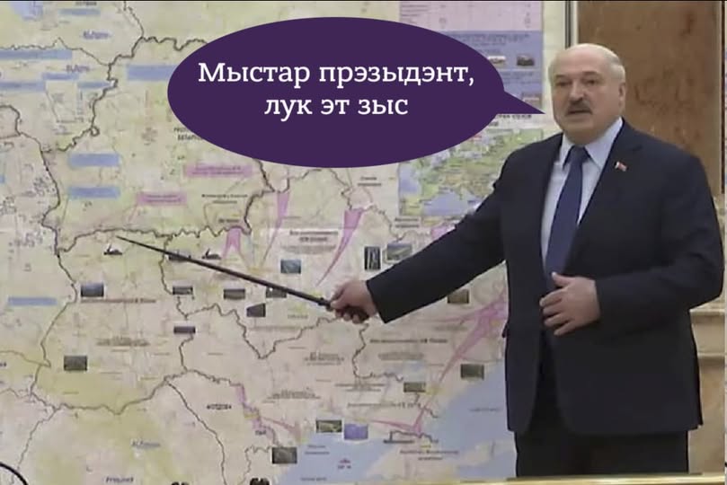Крім того, з’явився мем, на якому самопроголошений президент Білорусі щось показує на карті, звертаючись до Трампа з білоруським акцентом.