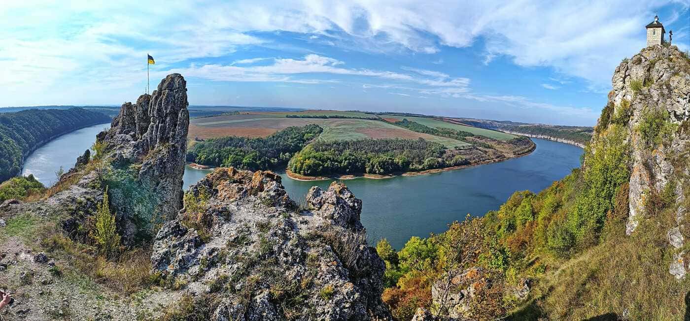 Це — один із найунікальніших природних об’єктів Поділля. Трирядовий ланцюг конусоподібних скель, що здіймаються на 15–20 метрів над правим берегом Дністра справляють незабутнє враження. Здалеку вони нагадують шишки, звідси й походить їхня назва.