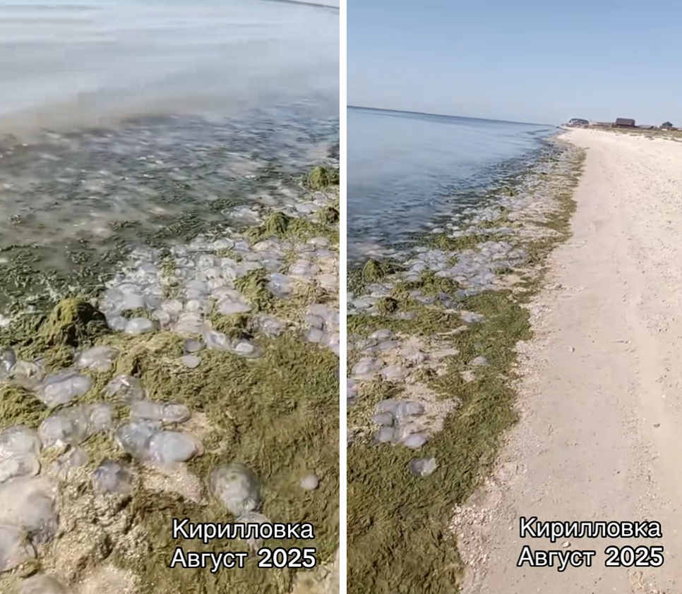 З популярного курорту Кирилівка перетворилася на пустелю. Як показують місцеві жителі, пляжі просто порожні, а в Азовському морі замість людей плавають лише медузи та водорості.