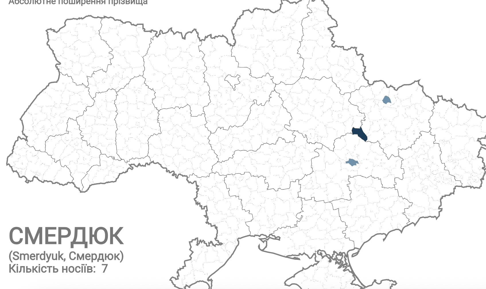• Смердюк – 7 носіїв, більшість з них теж в Харківській області;