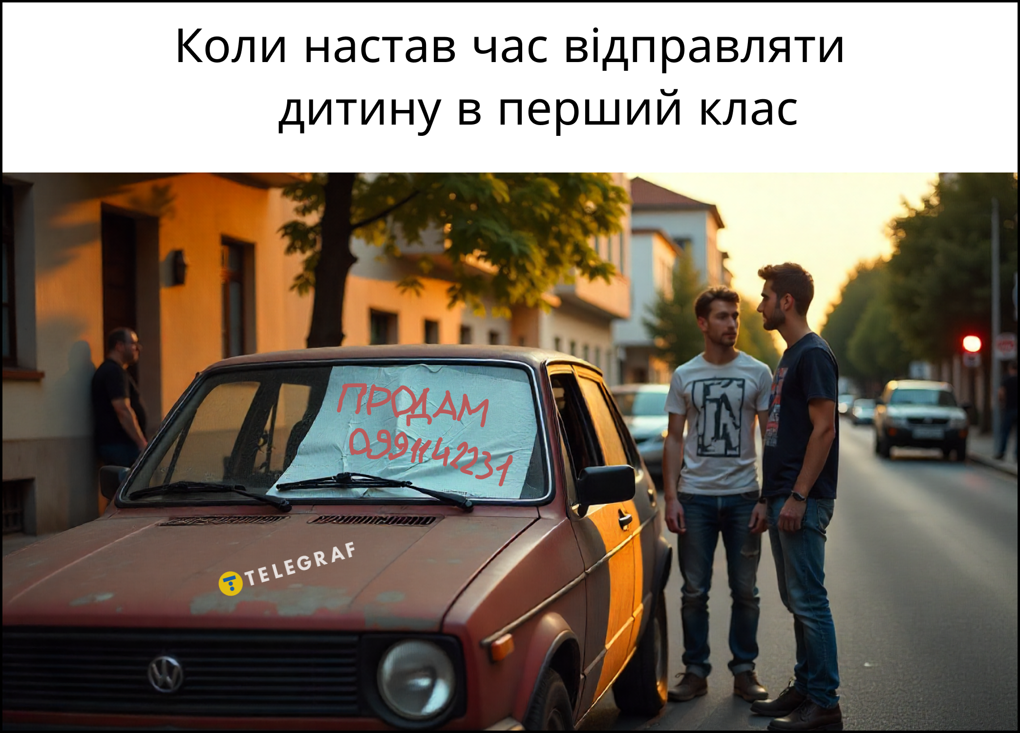 У наступному жарті ми показали, що деяким батькам доводиться продавати автомобіль, щоб відправити дитину до першого класу.