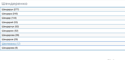 На території країни наразі, за даними порталу "Рідні", чимало прізвищ, що пішли від слова "шендер". Зокрема: