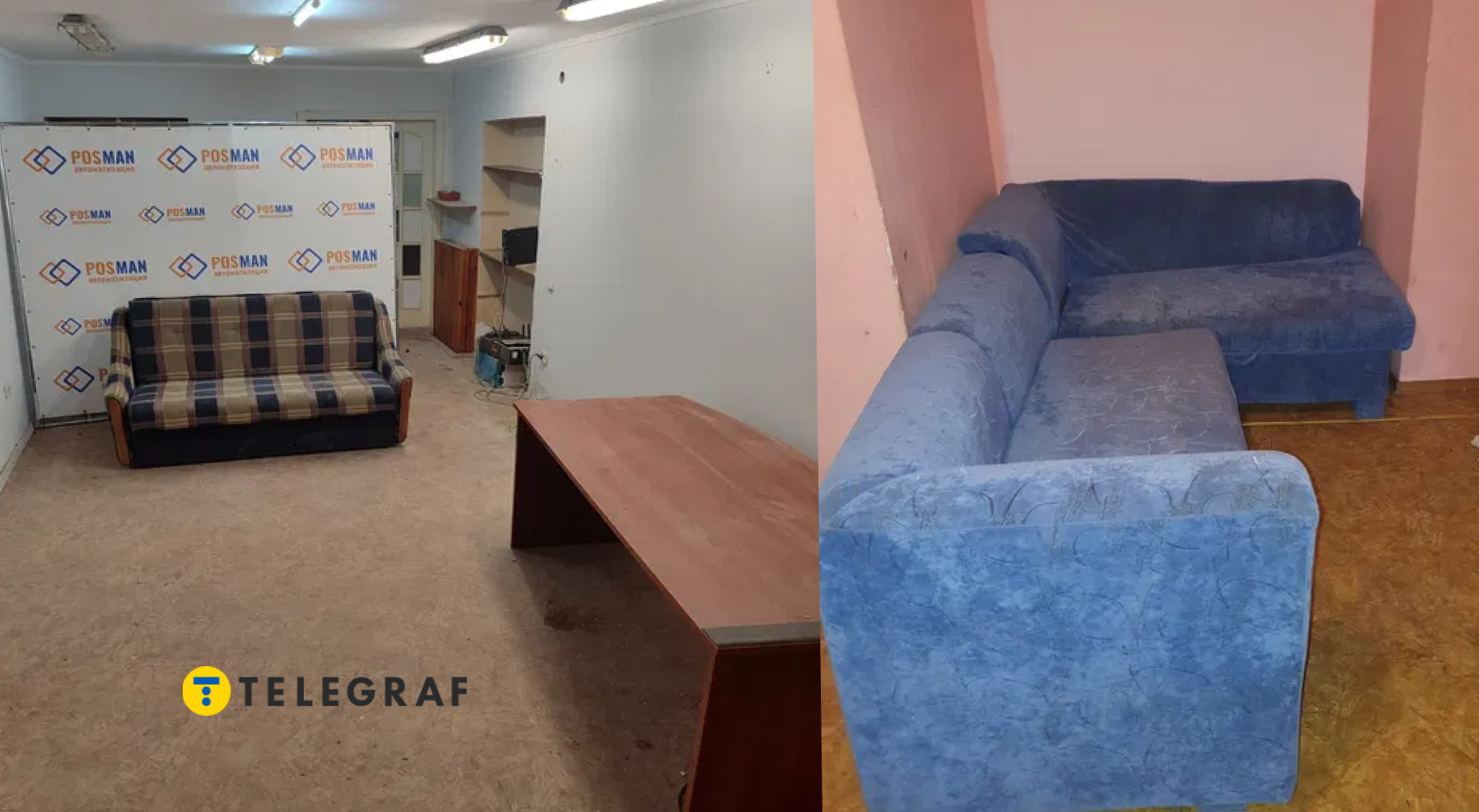 Житлові кімнати також не справляють позитивного враження. Меблі радянського зразка — шафи, дивани та ліжка — давно втратили вигляд, тканина на диванах та покривала на ліжках — забруднені та вицвілі. На фото видно плями й загальний безлад: речі розкидані хаотично, що створює враження запущеного простору.