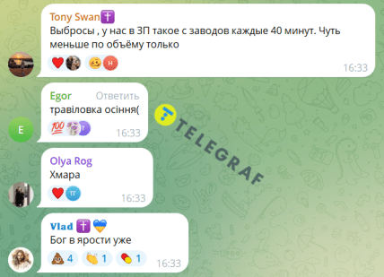 Відповідні кадри опублікували місцеві Telegram-канали. У коментарях люди обговорювали причини цього явища. Деякі мешканці Дніпра писали, що це якісь викиди. Інші вважали, що це небезпечний знак згори.