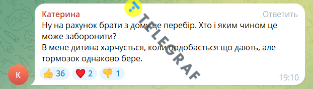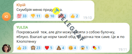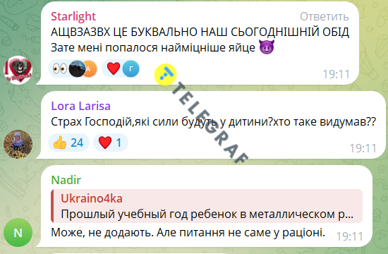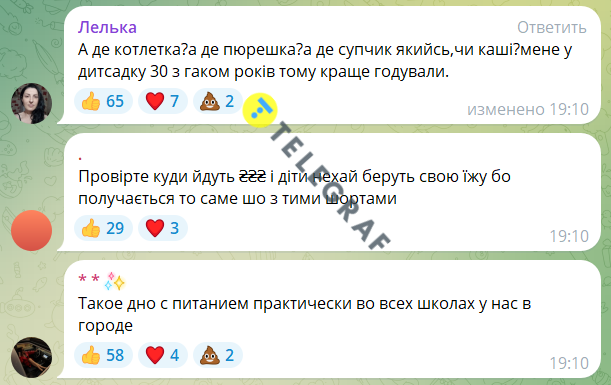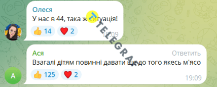 Батьки пишуть, що шкільні порції залишаються цілими, а діти повертаються додому голодними. При цьому їм не дозволяють брати їжу з дому, бо вважається, що їх годують.