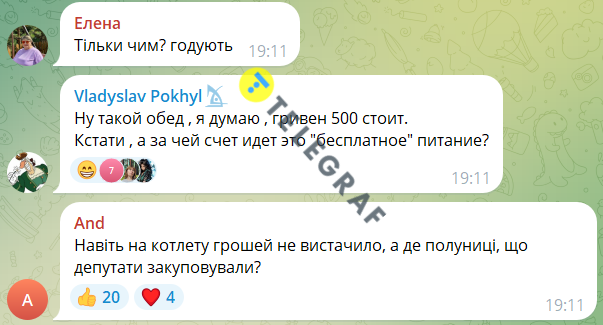 Були коментатори, які припускали, що вся справа у крадіжці місцевої влади або шкільних поварів. Інші звинувачували відомого кулінара Євгена Колопотенка, що брав участь у розробці шкільного меню, і навіть вживали на його адресу образливі слова.