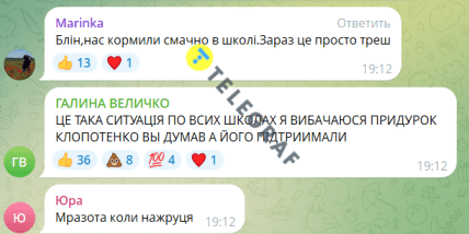 Відповідне відео опубліковано у місцевому Telegram-каналі. Люди скаржаться, що діти не можуть їсти шкільну їжу, а приносити свою їм не дозволяють.