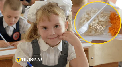 Відповідне відео опубліковано у місцевому Telegram-каналі. Люди скаржаться, що діти не можуть їсти шкільну їжу, а приносити свою їм не дозволяють.