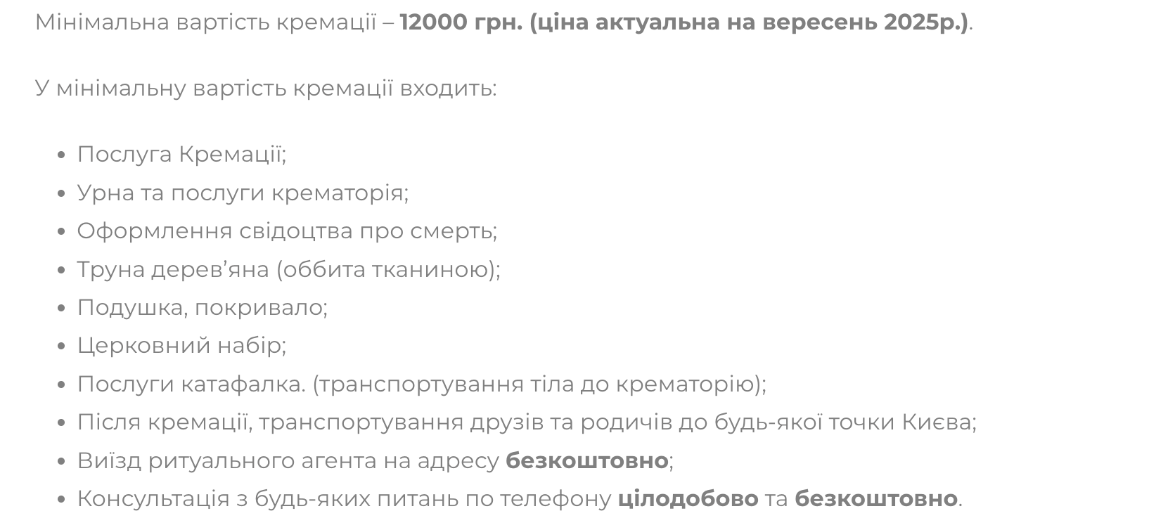 Вартість кремації в Україні
