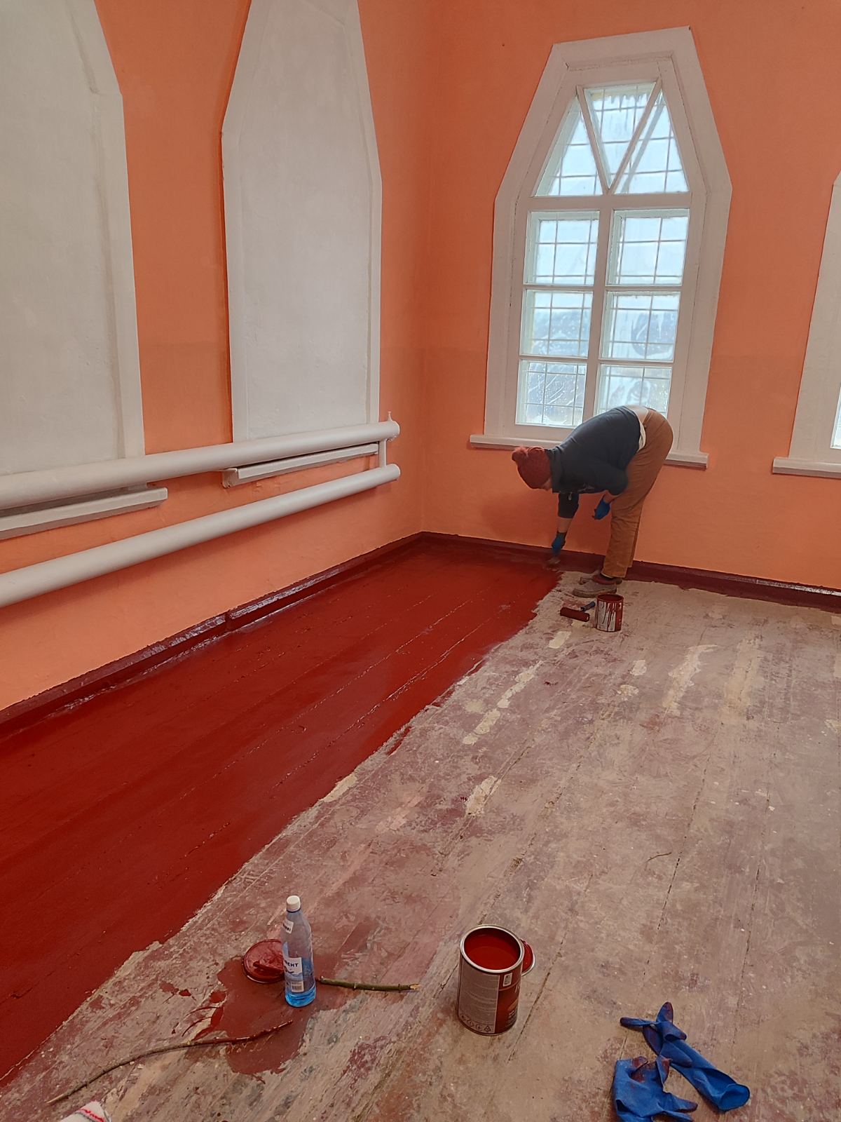 — Гляньте, які тепер стіни приємного персикового кольору, — хвалиться завідувачка клубу Оксана Берестовська. — Віддирали стару побілку, по-новому штукатурили, шпаклювали, фарбували… Добре, ні підлогу, ні двері, ні вікна замінювати не довелось. Вони зроблені з якогось надзвичайно міцного дерева, що за понад сто років з ним нічого не сталося. Лише де-не-де підшпаклювали, підбили й пофарбували.