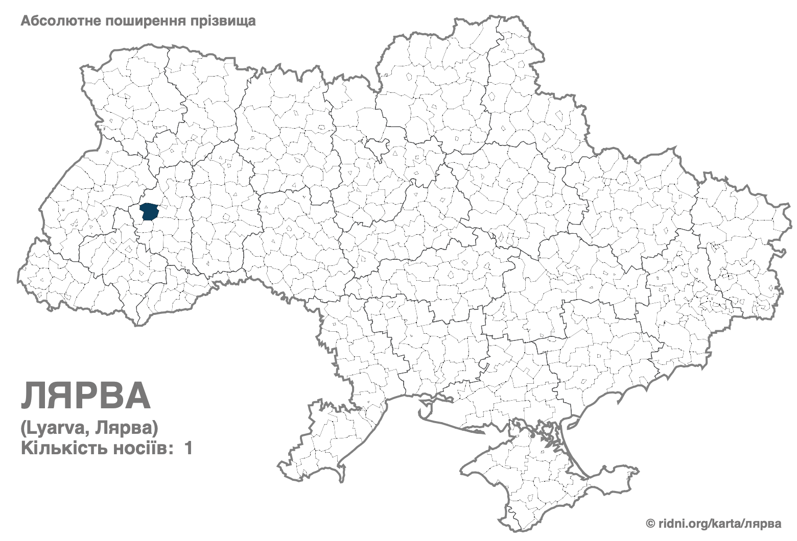 Згідно з даними порталу "Рідні", прізвище Лярва є надзвичайно рідкісним в Україні. На карті поширення прізвищ зазначено, що лише одна людина носить це незвичайне родове ім'я. Носій прізвища проживає в одному з районів західної України у Тернопільській області.