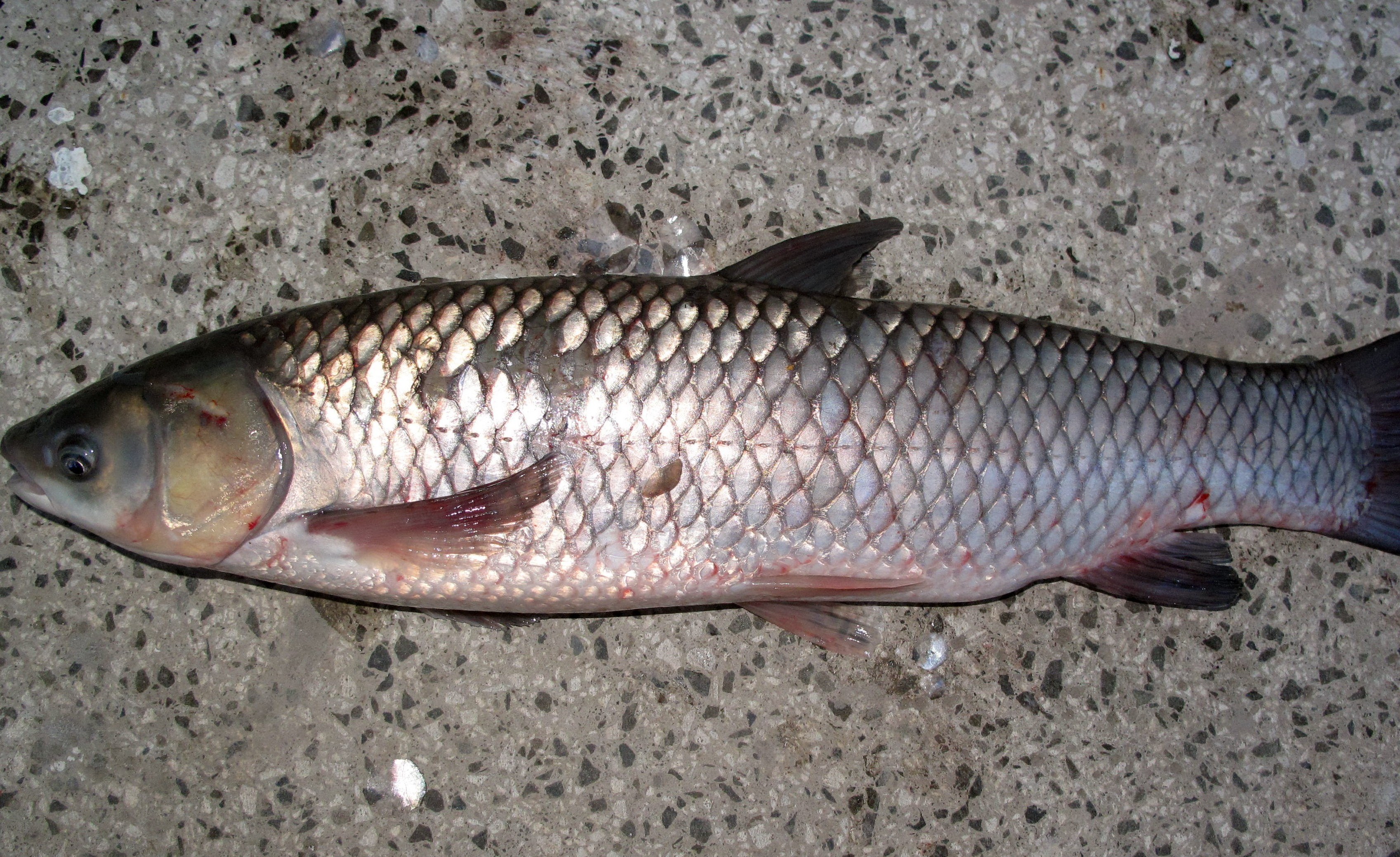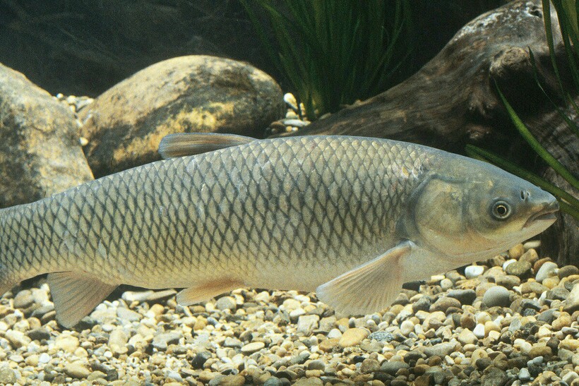 Білий амур — це велика прісноводна риба з видовженим тілом, вкритим великими лусками. Зазвичай її забарвлення світло-сріблясте або блідо-зеленувате, з відтінком білого, завдяки чому й отримала свою назву.