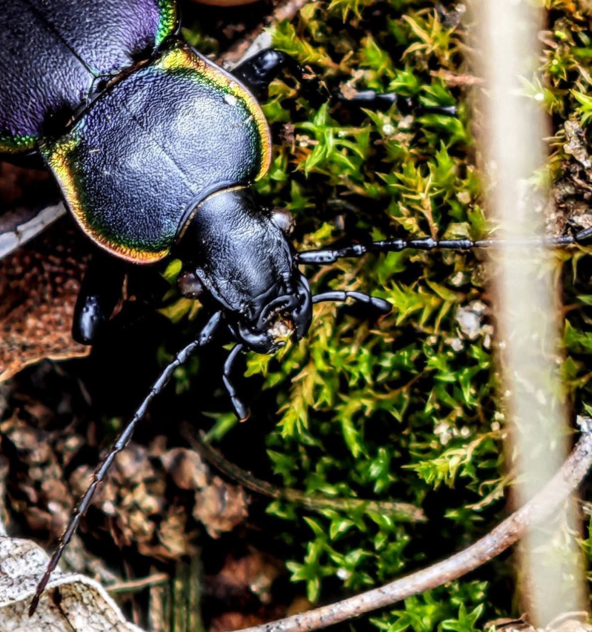 Фото туруна облямованого (Сarabus marginalis) чоловік показав у Facebook-групі "Комахи України". Українець попросив визначити комаху, назвавши жука "прудкий добродій з неоновим кантом". Комаха намагалася закопатися під мох.