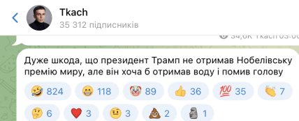 Інформація про те, що Трамп не отримає нагороду з'явилась у ніч, коли Росія завдала масованого удару по Україні. Внаслідок атаки у Києві та ще кількох містах зникло світло, а подекуди навіть вода. Тому українській журналіст Михайло Ткач досить влучно підмітив, що хоч президент США й не отримав Нобелівську премію, але він хоча б помив волосся зранку.