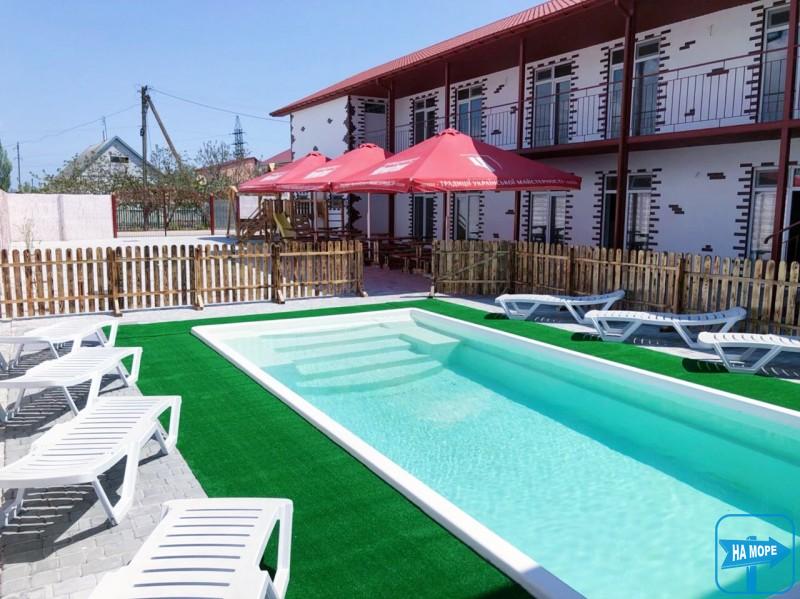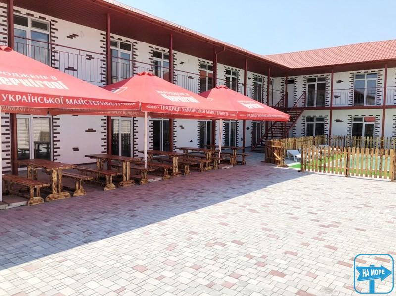 Ще один популярний за колишніх часів готель за 10 хвилин ходьби від пляжу з терасами та альтанками пропонував люксові та напівлюксові номери. Мінімальна вартість номера у 2020 році становила 700 грн.