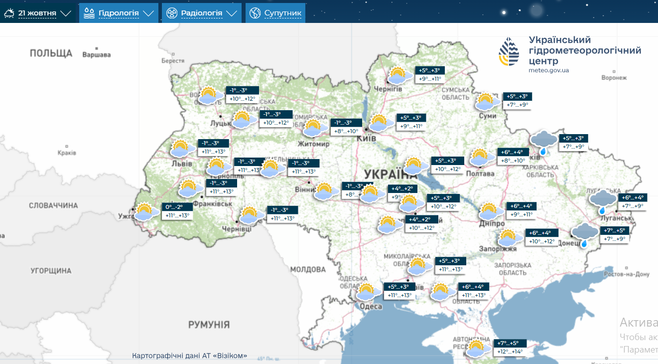 21 жовтня у західних областях буде найхолодніша ніч у жовтні, а у більшості областей температурний мінімум цього місяця синоптик обіцяє 22 та 23 жовтня.