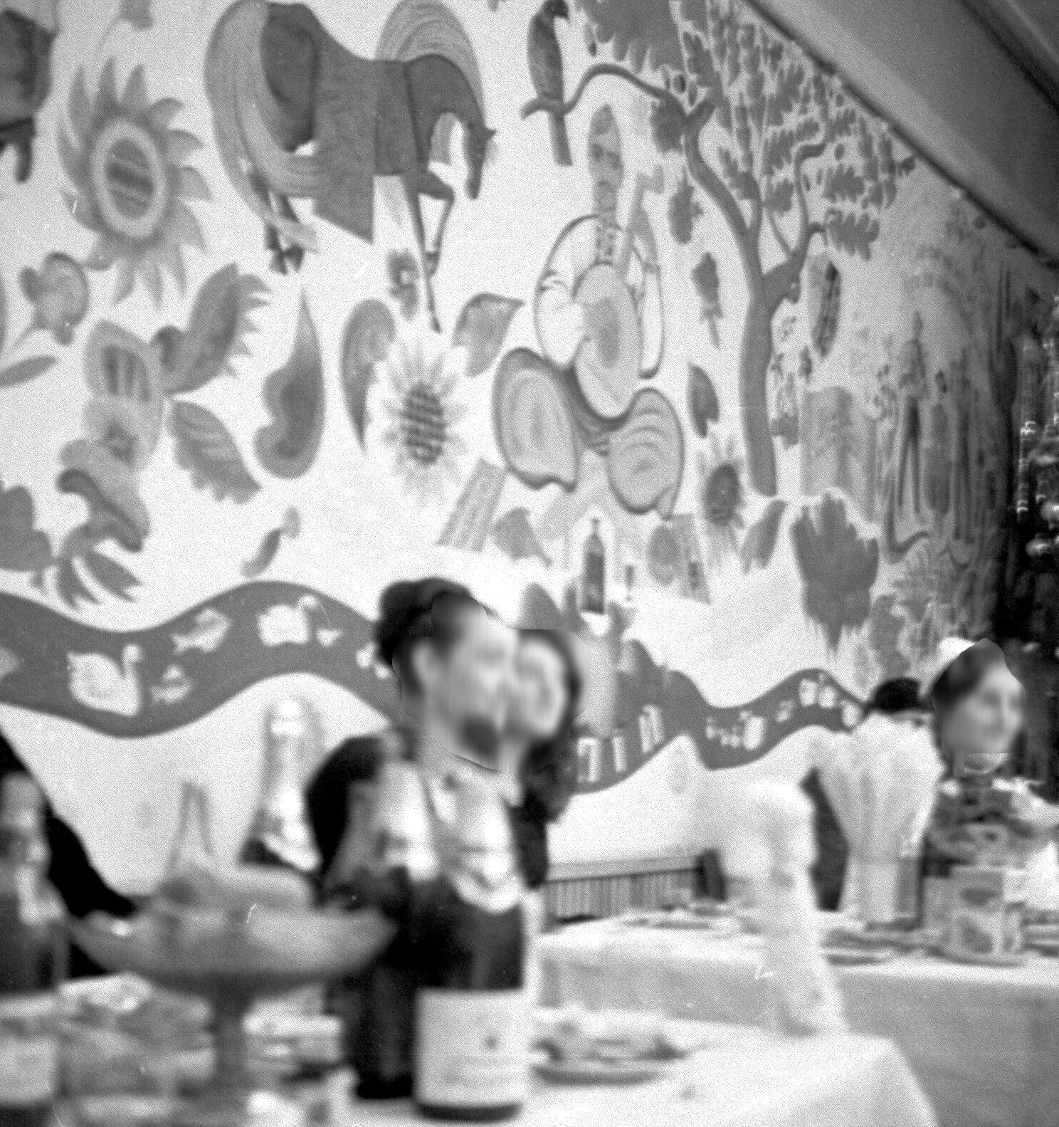 Перед тим як почати художню роботу, художники власноруч відремонтували приміщення. Зал був у занедбаному стані — із тріщинами та павутиною. Алла Горська власноруч пошпаклювала, побілила стіни й лише після цього взялася до творчої частини.