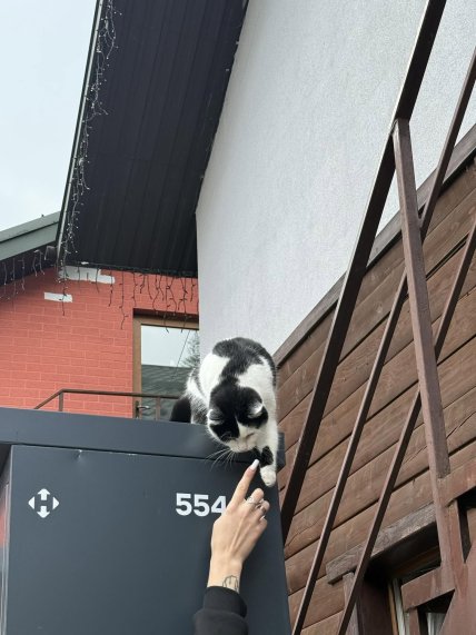 Миле фото опублікувала користувачка з ніком nastysya_25 у соціальній мережі Threads. Котик сидів на поштоматі та дав лапку дівчині, що простягнула до нього руку.