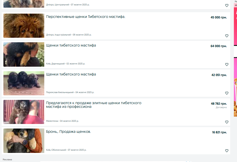 В Україні можна придбати таке цуценя, його вартість на OLX стартує від 15 тисяч гривень й вище. Є пропозиції за 4 тисячі гривень, але це собаки без документів.