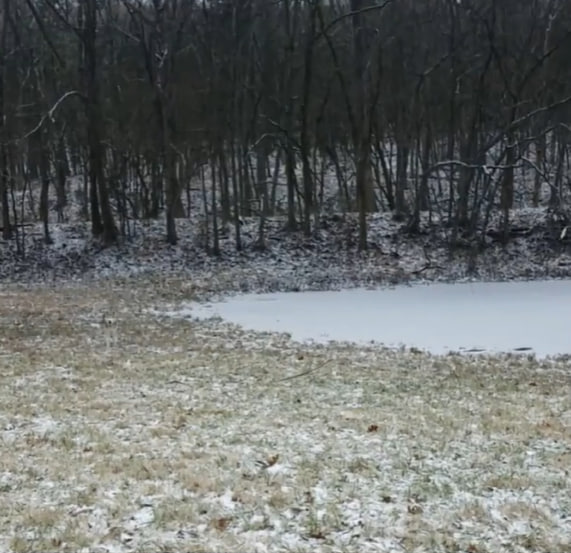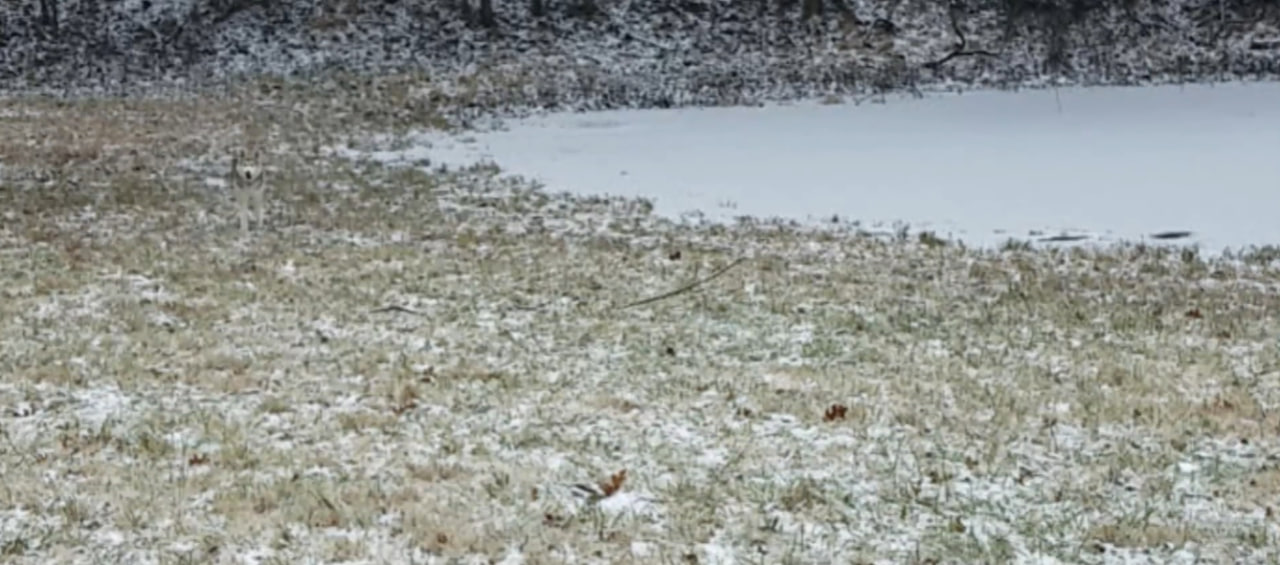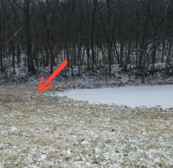 На перший погляд, перед вами звичайний зимовий пейзаж: снігова галявина, замерзлий ставок і темна лінія дерев на горизонті. Здавалося б, тут немає нічого примітного. Але не поспішайте з висновками, оскільки на цьому знімку майстерно сховався хаскі.