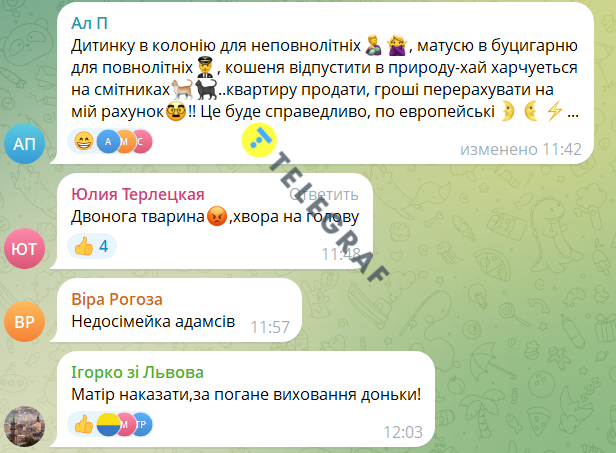 У коментарях до публікації піднялася хвиля обурення – люди вимагали забрати з цієї родини кошеня, а мати покарати. Але були й ті, хто скептично поставився до таких пропозицій та й загалом до того, що суспільство обурилося через цю історію.