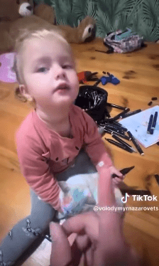На одному з роликів видно, як маленька дівчинка малює фломастерами на тварині, а потім намагається стерти своє "мистецтво" рушником. Заради об'єктивності зазначимо, що жінка казала дитині, що так робити не можна.