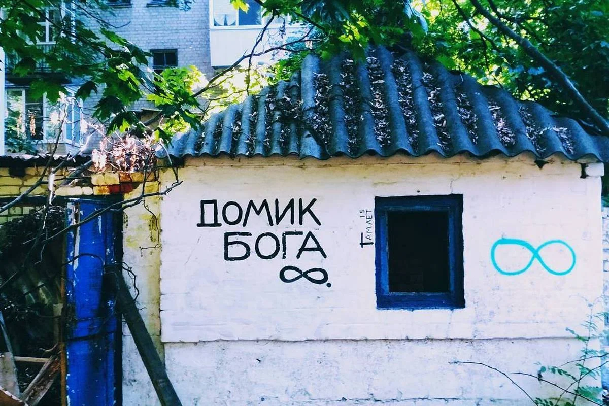 Майже у центрі Харкова стоїть невеликий білий будинок, який місцеві жителі називають "Будинок Бога". Напис на ньому зробив відомий місцевий художник Гамлет Зіньковський.