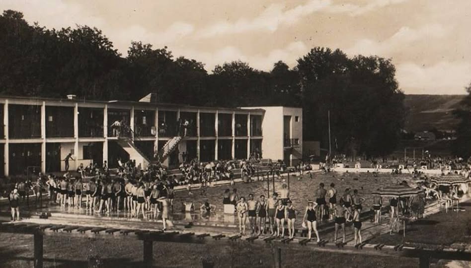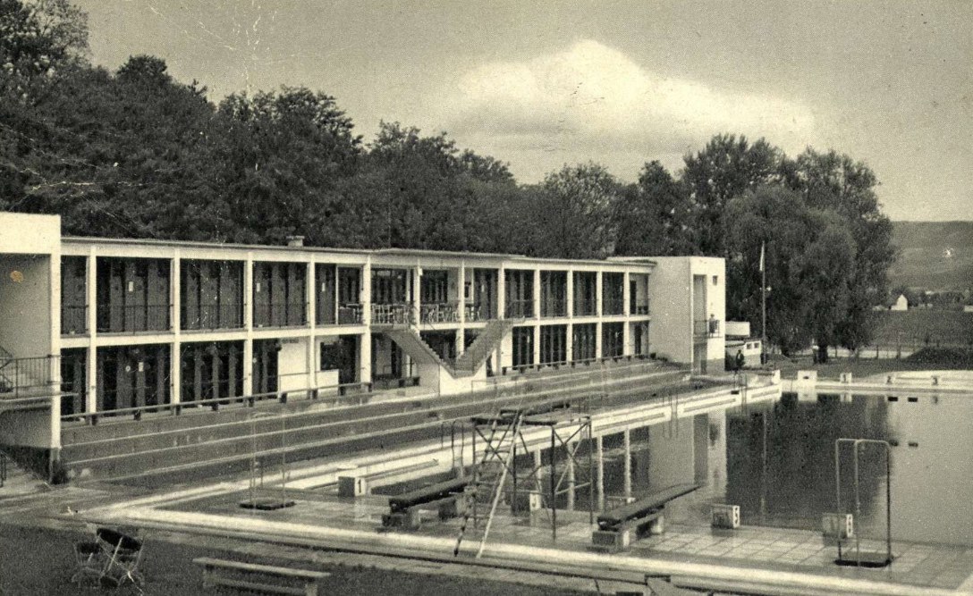На першому поверсі будівлі облаштували, крім зручних роздягалень, ще й невеликий ресторан з кав’ярнею, що виходила до тінистого міського парку. Воду в басейн набирали насосом зі спеціально збудованого бетонного колодязя у парку, очищали її та підігрівали. Щоб набрати повний басейн води, системі було потрібно 9 годин. Урочисте відкриття басейну відбулося 10 липня 1938 року.
