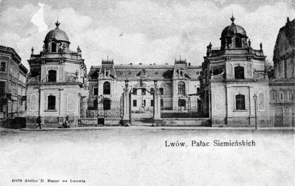 Проєкт замовив граф Костянтин Семенський у відомого архітектора Фредерика Баумана. До середини XIX століття будівництво завершили, і Львів отримав ще одну величну аристократичну резиденцію. Син графа, Станіслав Семенський, радник цісарського двору у Відні та кавалер Мальтійського ордену, ініціював перебудову палацу у французькому бароко. Наприкінці XIX століття реконструкцією займалися архітектори Іван Левинський та Ян Кудельський, що остаточно сформувало сучасний вигляд будівлі.