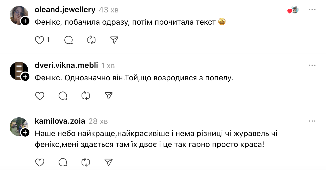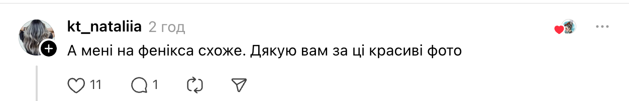 - "А мені на фенікса схоже. Дякую вам за ці красиві фото".