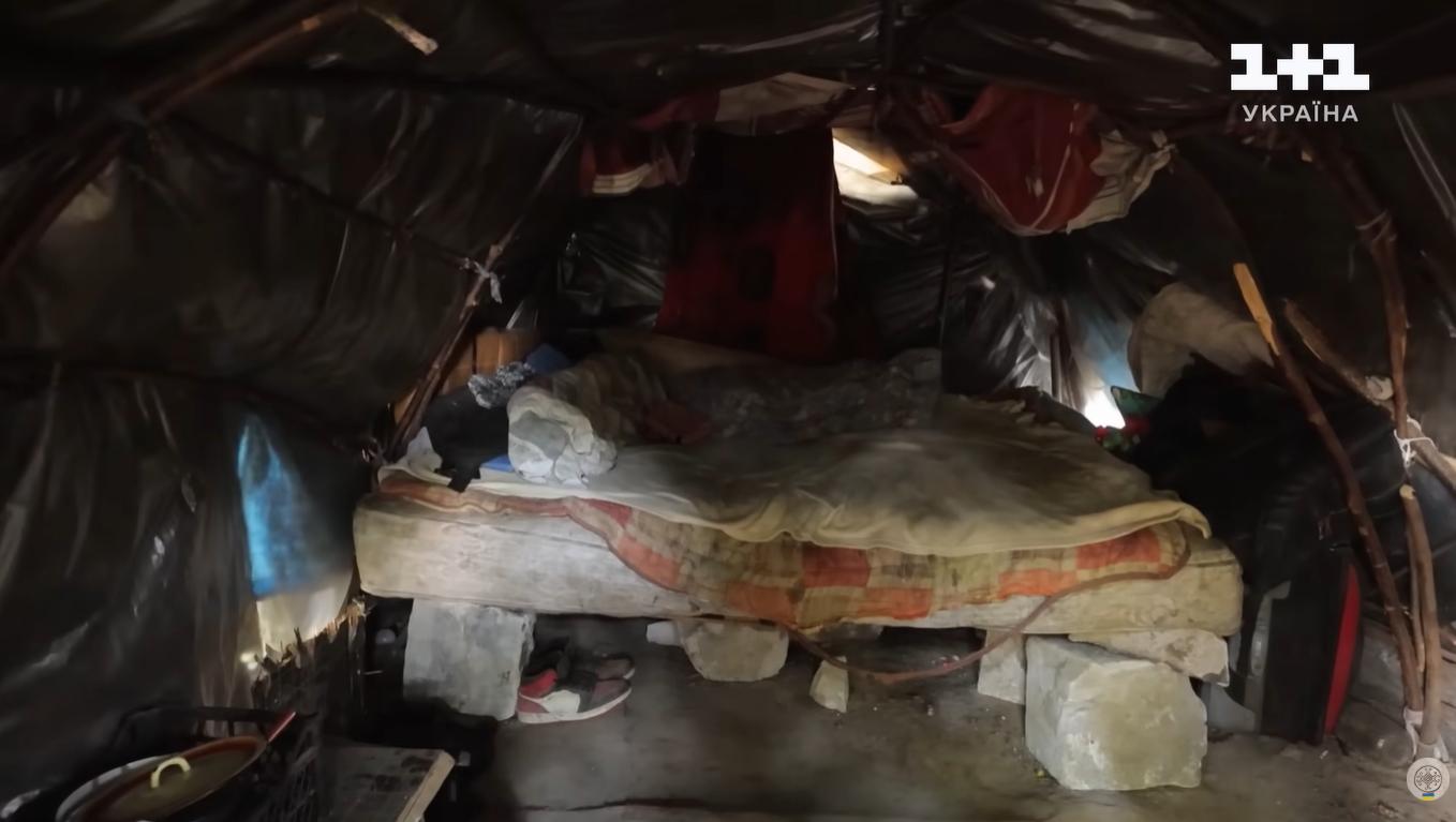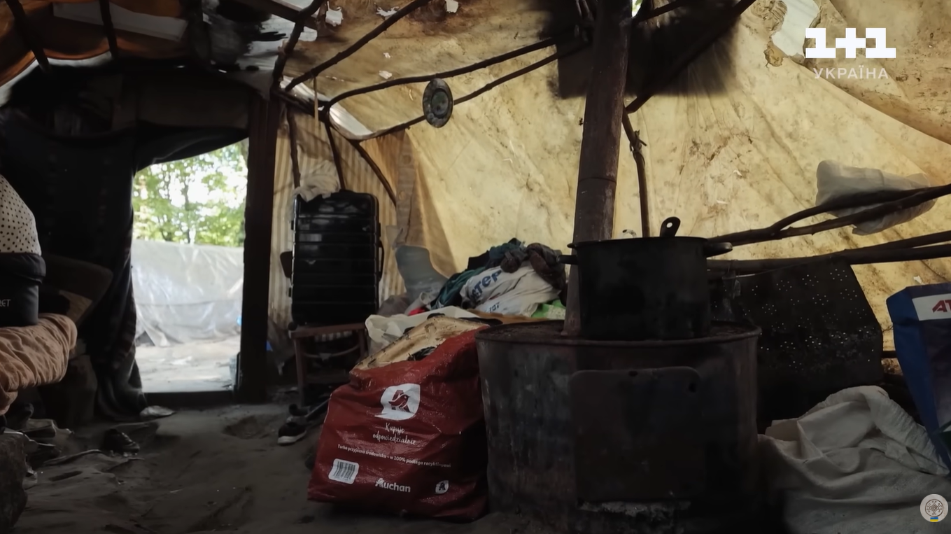На гіллястому каркасі натягнуто клейонку, що править за стіни й дах, а місцями для тепла висять старі, обідрані ковдри. У саморобних будиночках стоять ліжка з матрацами, підперті бетонними блоками, а замість опалення — буржуйки, змайстровані з металевих бочок. У таких умовах ромські родини мешкають по двоє, п'ятеро і більше людей. Одна з мешканок зізналася, що хотіла б кращого життя для себе і своїх дітей. Вона зазначає, що 1000 гривень на день їй явно недостатньо, адже у неї велика родина, тому й має більше витрат на життя.