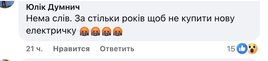 • Нема слів. За стільки років, щоб не купити нову електричку.